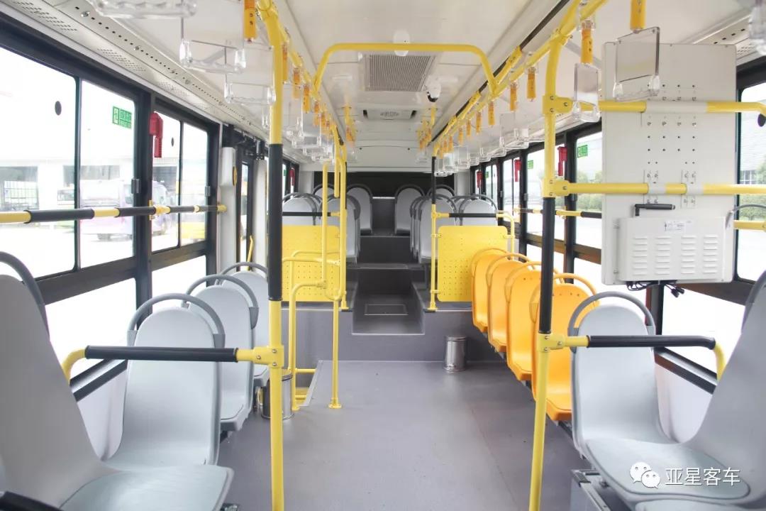 此批订购的是亚星JS6108型纯电公交车,车长10.5米,座位数为30座,核载人数可达89人。蓝白色的车身图案,在这个夏季显得格外舒心。车身造型简洁大方,车窗视野开阔。车辆安装了冷暖空调,一年四季都可一路为乘客提供舒适的乘坐环境。车载电子导程屏,时刻为乘客提供线路信息,提高乘车便捷度。同时,采用电池底置的布局,从而实现后围通透,使得车内更加宽敞明亮,乘坐体验也更加舒适。电池虽然在车身底部,但电池舱完全与乘客舱隔离,且舱门密封性良好,以确保电池安全。这批车辆统一采用全车CAN智能控制系统,仪表台上安装7英寸彩色液晶显示屏,集成倒车和中门监控,集成各电机、电池、整车等运行实时状态和故障显示,车辆状态时刻在驾驶员的掌控之中,确保车辆行驶安全。车内还安装驾驶员疲劳预警体统,有效杜绝疲劳驾驶隐患。