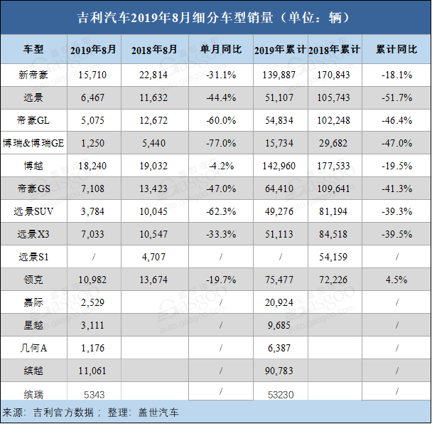 ■ 博越:8月销售18240辆 与去年同期差距较小