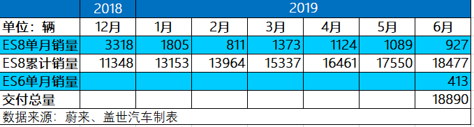 自一年前蔚来开始交付高性能智能旗舰电动SUV ES8以来,截至2019年6月30日,蔚来已完成交付ES8和ES6共计18,890辆。