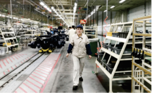自1992年入职柳汽以来,张丽珍在艰苦的生产一线上一干就是二十七年。作为女性,她没有要求特殊照顾,和班组的男员工干一样的活。在二基地总装车间还装配长头卡车时,张阿姨负责油箱装配岗位,没有助力机械手,搬运油箱全靠人力搬运。约50斤重的油箱,每天要搬100多个。很多年轻小伙子干了几个月都表示吃不消,而身形偏瘦小的张阿姨在这个岗位上干了七年,班组的男员工们对她都是由衷地佩服。