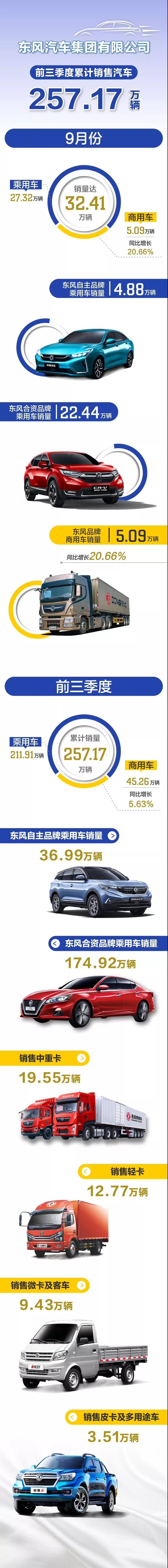 东风汽车集团有限公司前三季度累计销售汽车257.17万辆 |