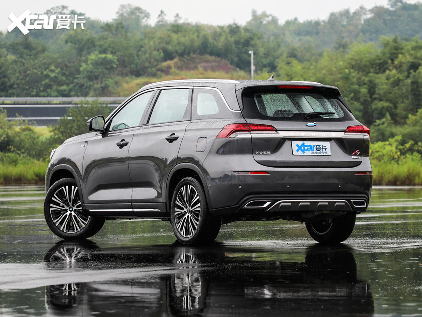 长安欧尚X7的长/宽/高分别为4705/1860/1720mm,轴距为2780mm,定位紧凑型SUV。另外,长安欧尚X7配有19寸双色轮圈,强调了其力量感。车尾以横向线条为主,营造出了较强的层次感。接近直角的LED尾灯横向排列整齐,十分规整,尾灯之间通过镀铬装饰连接,加强了车尾的整体感,也与前脸的设计相互呼应。