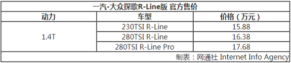 探歌是一汽-大众旗下紧凑级SUV,目前在售产品仅有普通版车型,企业还推出带有R-Line套件的“运动版”车型。日前,网通社从一汽-大众官方获悉,探歌R-Line版上市,共推出3款车型,售价区间15.88-17.68万元。外观方面,新车进气格栅及翼子板处带有“R”标识,同时车身增加了专属贝加尔湖蓝车身配色。