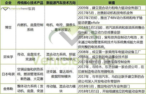 除了四大汽车零部件厂商开始发力电气化,其他传统汽车零部件厂商也不甘落后。因此,VehicleTrend车势总结了十家传统汽车零部件厂商面对电气化所作出的努力:
