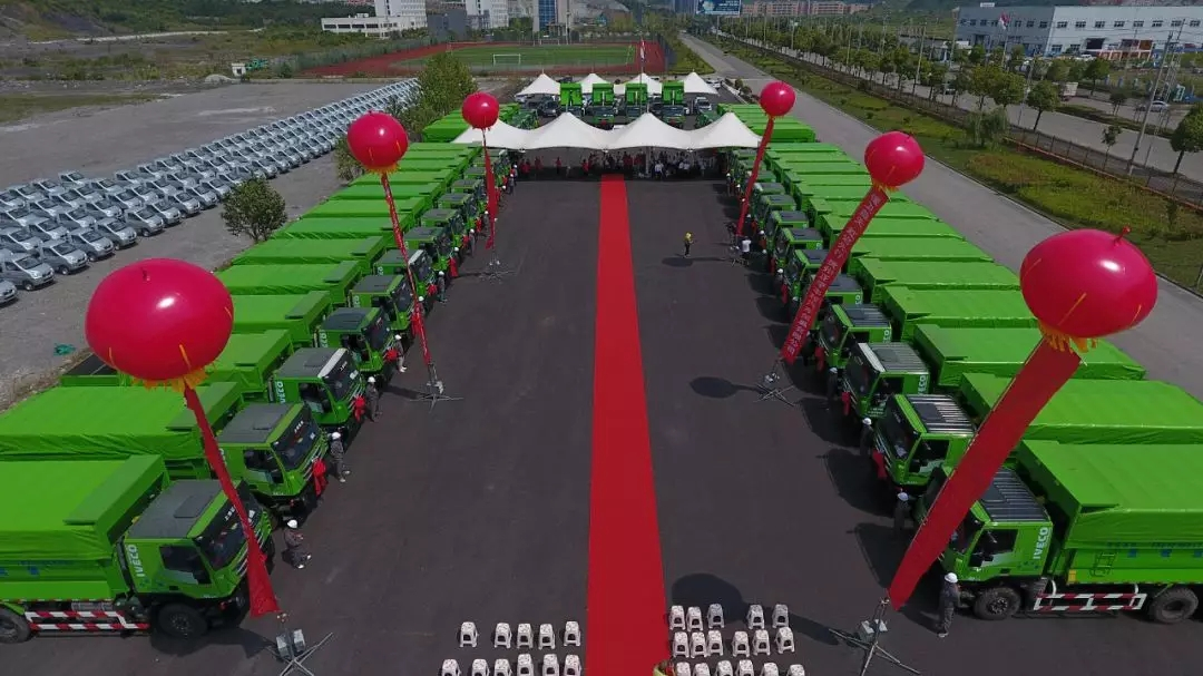 近日,上汽红岩杰狮智能渣土车批量交付贵州六盘水某运输公司,助力西南地区经济环保事业发展。