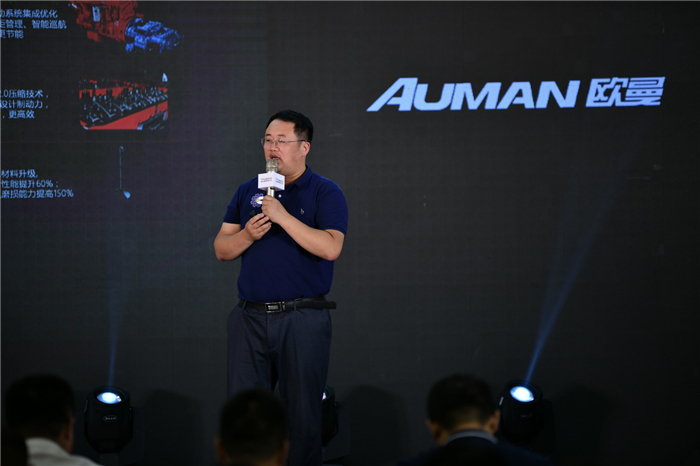 福田戴姆勒东北分公司客户行销经理李彦达介绍欧曼GTL轻盈版产品