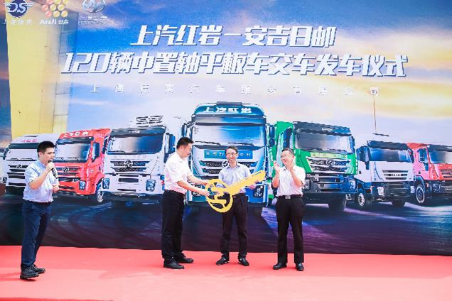 正是高效率、高品质的产品属性,让上汽红岩中置轴平板车受到安吉日邮的高度认可。安吉日邮相关领导在交车仪式上表示:“白色家电运输有其显著特性,对运输车辆的空间、动力、平稳性都提出了更高的要求。经过多方对比、筛选,我们惊喜地发现,相比传统的货运车,上汽红岩中置轴平板车更具承载优势和动力优势,同时也带来更高的装卸效率,使得大件物品的装卸更为方便。”