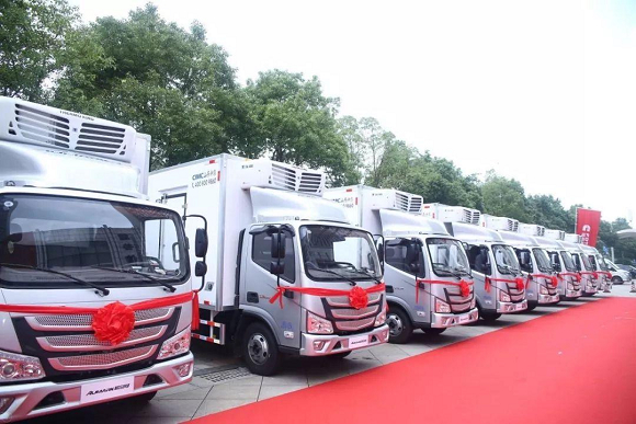 [首批交付给湖南兴盛优选的百台欧马可超级卡车“冷链之星”]