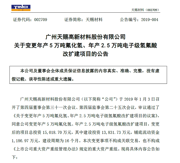 今年5月31日,天赐材料公告称拟公开发行可转换公司债券,募资不超过11.4亿元,用于投资建设年产40万吨硫磺制酸项目、年产20万吨高钴氢氧化镍项目及补充流动资金,加深布局。