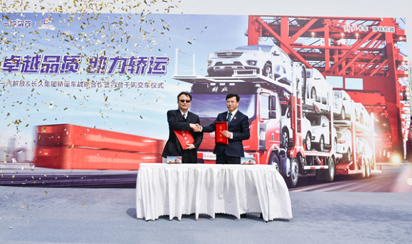 4月3日,一汽解放与长久集团达成轿运车战略合作,并在长春长久物流基地举行签约仪式和1000辆轿运车交车仪式。