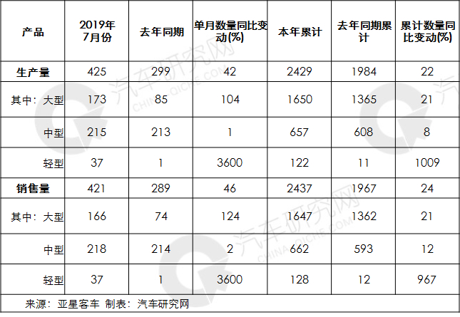 附:扬州亚星客车股份有限公司2019 年7月份产销数据快报