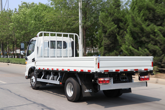 整车采用轻量化设计,在底盘方面,骏铃采用少片簧悬架+高功率密度主减后桥+无内胎轮胎设计,保证在承载强度不变的情况下,同时兼顾整车驾驶的平稳性及高效的传动性。不仅如此,货箱地板骨架大量应用高强钢,配置鼓式制动器,使整车真正做到了由内而外的“减脂塑身”。