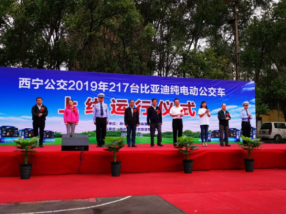 8月8日上午,西宁公交2019年比亚迪纯电动公交车上线运行仪式在西宁公交集团四分公司举行。此次共投放217台纯电动公交车,这是继2017年、2018年之后,西宁第三次投放比亚迪纯电动客车。