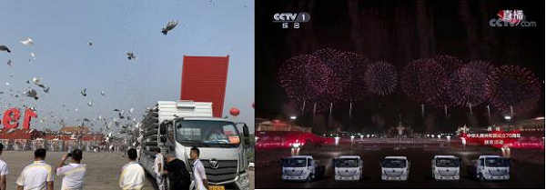 【欧马可圆满完成国庆70周年庆典和平鸽运输放飞及联欢会特效烟花装置运输燃放任务】