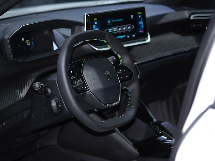 i-Cockpit沉浸式座舱,整体造型具有相当强烈的未来科技范。另外,车内双辐式运动方向盘、10英寸中控液晶屏以及采用三维投影显示的仪表一应俱全,还有Alcantara材质或Nappa皮质,以及碳纤维风格纹理饰板。