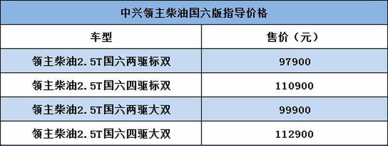 9.79-11.29万元 中兴领主2.5T柴油国六上市
