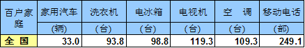 根据2019年国家统计局权威发布的中国统计年鉴,中国居民家庭的消费品普及率总体水平较高。百户家庭中除了汽车之外普及率都达到百户家庭百台左右水平,尤其是空调,电视机等,达到百户家庭100台以上的水平。而洗衣机和电冰箱等家庭标配产品也达到100户家庭95台左右的水平。汽车消费是唯一的消费短板,仅有全国1/3的家庭拥有汽车,而且如果考虑部分家庭有多台车的复数保有的话,实际上有更多家庭没有车。