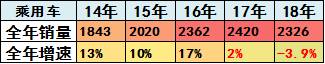18年全年生产新能源车130万台,较17年增4成。18年新能源乘用车100万,继续保持较强的高增长走势。19年生产119万台新能源车,增速-1%的偏弱,11月新能源乘用车甚至下降41%,虽然退坡压力大,但新能源仍是19年车市的亮点。