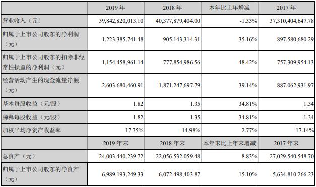 4月1日,中国重汽集团济南卡车股份有限公司(下称“公司”)发布2019年年度报告。报告期内,公司实现重卡销售136,955辆,同比下降3.45%;实现营业收入398.43亿元,同比下降1.33%;实现归属于母公司净利润12.23亿元,同比增长35.16%。利润增幅高于收入增幅,企业盈利能力进一步增强。