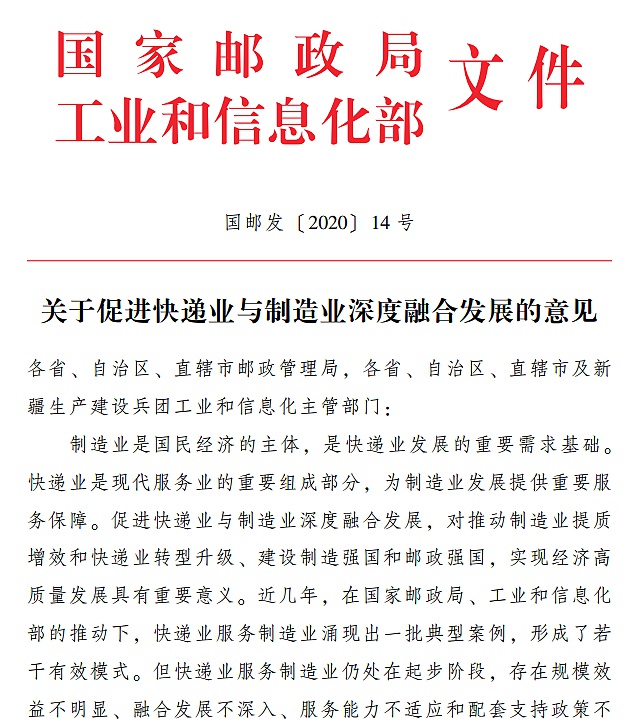 《意见》要求,深化产业合作。鼓励制造企业专注于设计、研发和生产等核心环节,优化业务流程,整合外包采购、生产、销售和售后等环节的快递物流需求,引导有实力的快递企业(经营快递业务的企业,下同)有效承接并提供集约化、专业化的服务。支持制造企业与快递企业签订中长期合同,建立互利共赢、长期稳定的战略合作关系。引导快递企业主动与制造企业对接,共同设计制造企业供应链流程,打造个性化、定制化供应链管理解决方案。支持制造企业与快递企业整合资源,成立合资公司,发挥各自优势,发展面向同一制造业领域的供应链服务。鼓励制造企业与快递企业加强资源共享,盘活闲置的土地厂房、仓储物流设施和运输能力。