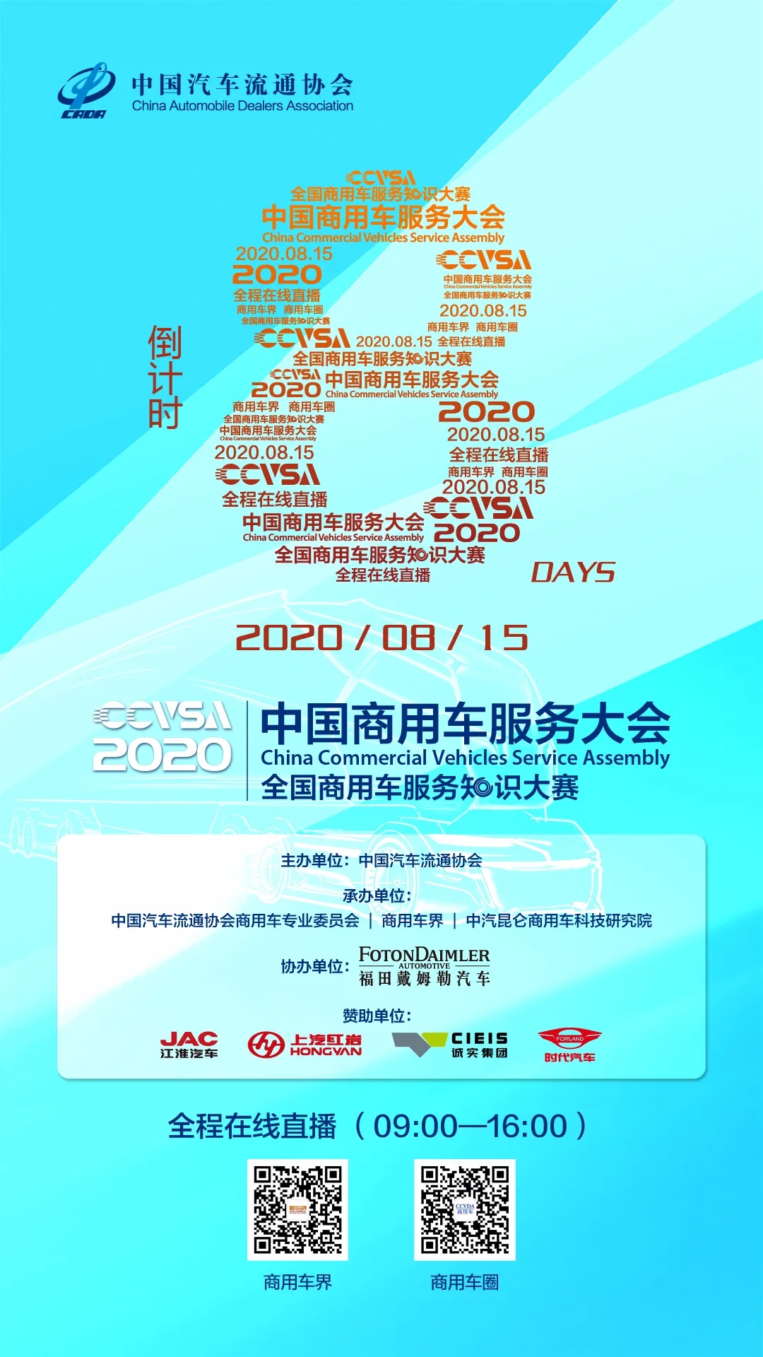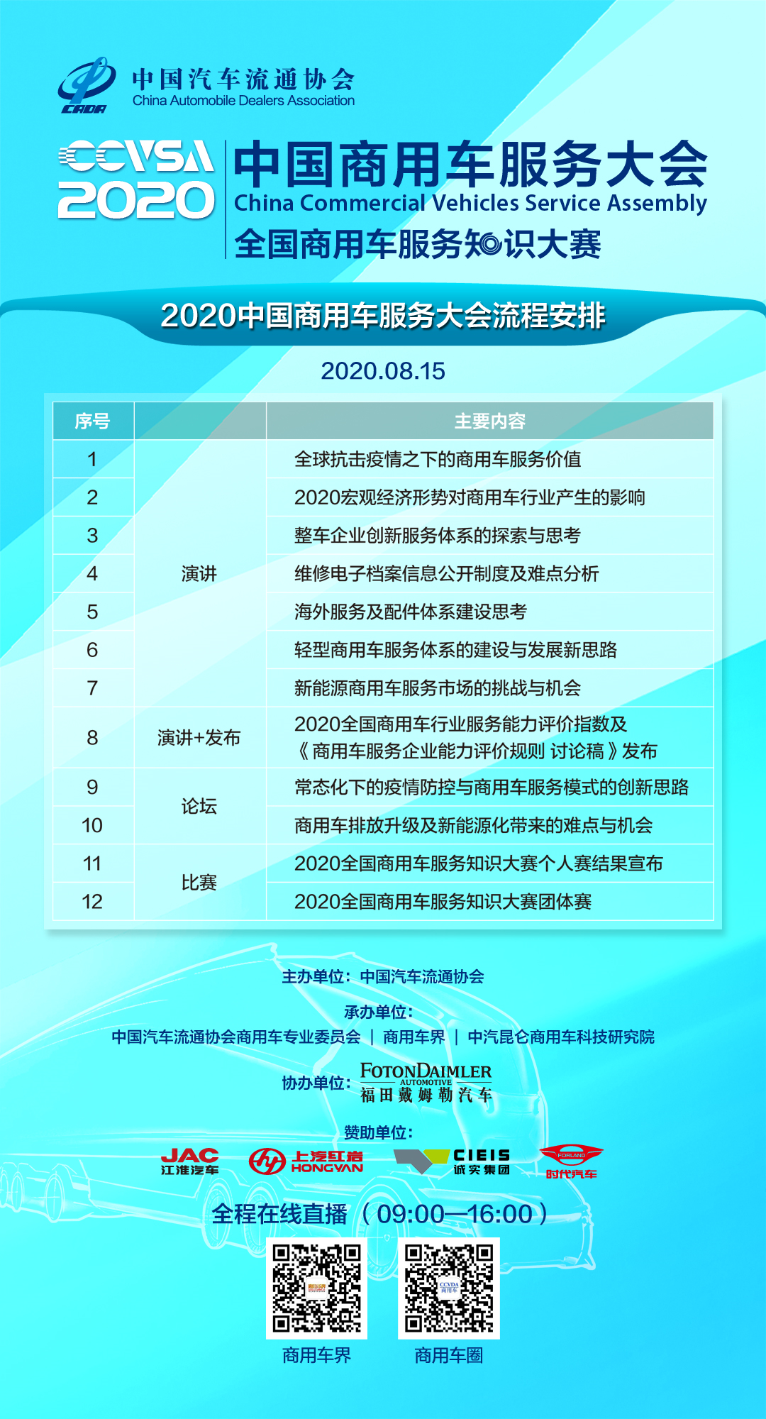 头条 | 直播入口已开通!2020中国商用车服务大会8月15日在线等您!