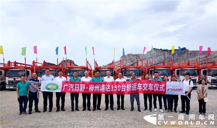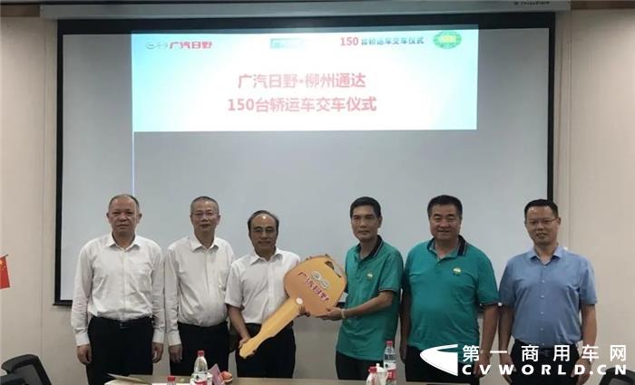 2020年9月8日,“广汽日野·柳州通达150台轿运车车交付仪式”在广西柳州隆重举行。柳州通达董事长李祥林、副总经理周华,南宁中集总经理任国庆,广汽集团副总经理李少、副总经理兼广汽日野董事长陈汉君,广汽日野执行副总经理陈秀深等共同出席了本次交车活动。