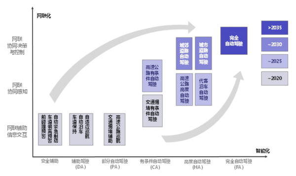 2035年以后,FA级自动驾驶乘用车开始应用。