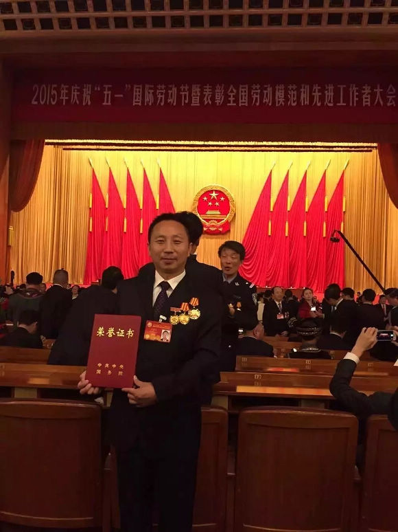 ▲王建清荣获2015“全国劳动模范”荣誉称号