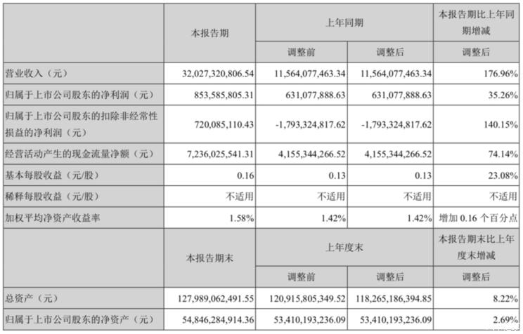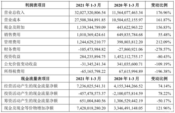 日前,长安汽车发布2021年一季度业绩公告。数据显示今年第一季度公司营收约320.27亿元,同比增长176.96%;归属上市公司股东的净利润8.54亿元,同比增长35.26%;归属上市公司股东的扣非经常性损益的净利润扭亏为盈约7.2亿元,同比增长140.15%;基本每股收益0.16元,同比增长23.08%。
