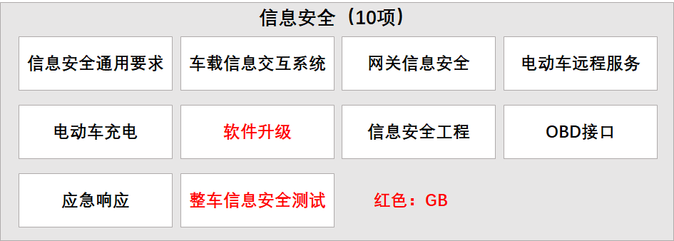 为保障汽车信息安全的基线,GB《汽车整车信息安全技术要求》于2021年4月立项,并已完成草案编制工作,现处于试点验证阶段。该标准是国内第一个汽车整车信息安全技术要求强制性国家标准,规定了TSP、APP、外部接口、通信信道、FOTA、本地升级、数据代码安全等多项技术要求和测试方法。