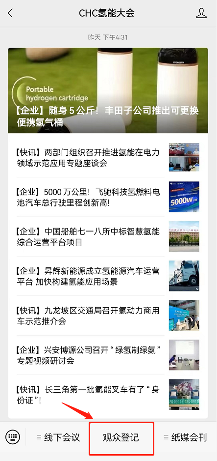 观众免费领取门票通道2:搜索公众号“CHC氢能大会”