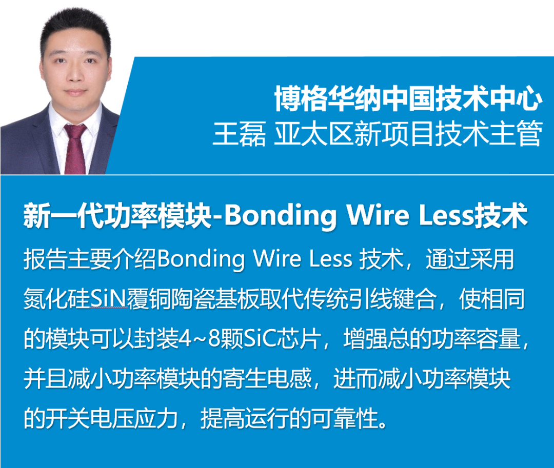 Développement、纬湃科技、博格华纳、法雷奥、博世、英飞凌、丹佛斯、中车时代半导体等单位的高层技术专家,分享最新的SiC功率模块封装及应用技术趋势与创新技术: