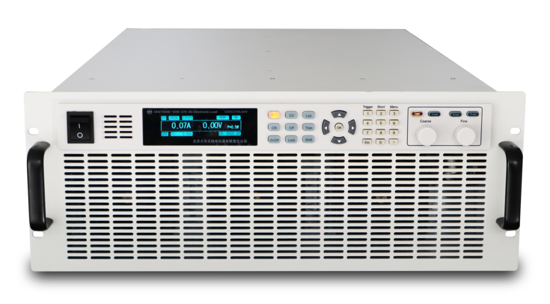 DH27800E 系列大功率可编程直流电子负载,功率密度可达 4U/6kW, 可提供150V、600V、 1200V 三 种 电 压 等