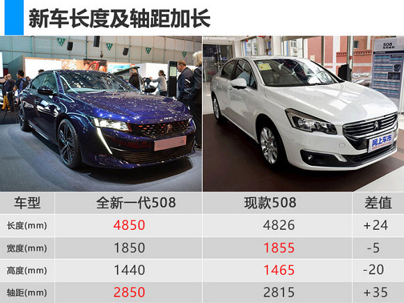 国产全新一代508将会针对中国市场进行加长,车身长宽高分别为4850×1850×1440mm,轴距为2850mm,相比现款车型,长度及轴距均有加长。新车基于标致雪铁龙集团旗下最新的EMP2平台打造,采用了大量高强度钢材和轻量化铝合金材料,整备质量较现款车型降低了140斤,可提升燃油经济性。全新一代508海外版提供1.6T汽油和1.5T、2.0T柴油三款发动机,国产车型预计将搭载1.6T汽油发动机,分为高低功率调校,传动系统匹配全新8速手自一体变速箱。