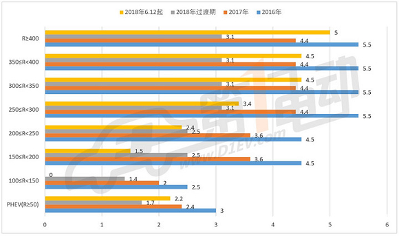 新能源乘用车过渡期补贴对比一览(单位:万元)