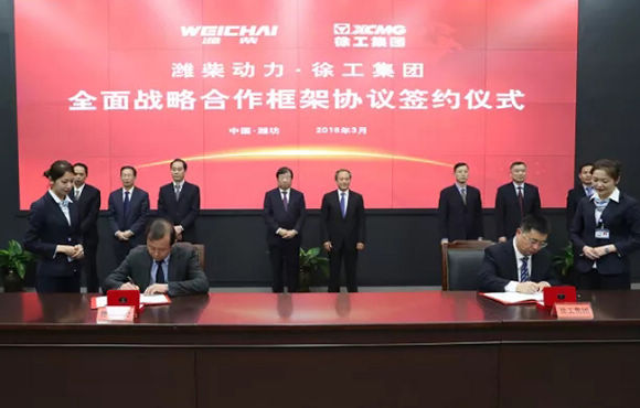 3月26日,潍柴动力与徐工集团在山东潍坊签署全面战略合作框架协议。双方将聚焦中国制造业的高质量发展,携手并进,助推民族工业迈向高端。