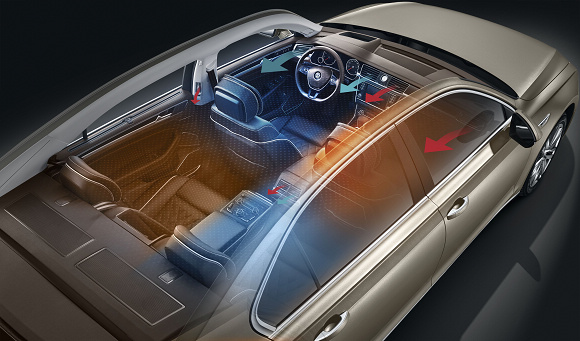 辉昂对于乘坐空间的舒适打造也是不遗余力。其四温区全自动空调系统具有 4 个独立气候分区,驾驶者和乘客可控制各自所在分区的温度、风量和气流分配,带来惬意舒适的车内温度。此外,该空调系统的双滤芯过滤装置也能够有效过滤99%以上的PM2.5,使驾乘者在冬季尽享自然清新。