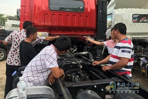 中国重汽HOWO销售员耐心的给客户讲解我们的六宽优势
