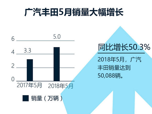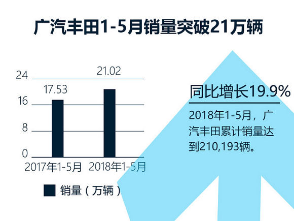 2018年是广汽丰田加速推进TNGA架构落地的一年,除了已经上市的全新第八代凯美瑞以外,还将在本月底上市全新小型SUV——C-HR,冲击50万辆年销目标。近日,广汽丰田公布了最新的产销数据,1-5月累计销量达到210,193辆,同比增长约20%。其中,“明星”车型——全新第八代凯美瑞5月单月销量突破1.5万辆,同比劲增94.8%,今年前5月累计销量近6万辆,占品牌总销量的28%。