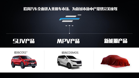 随着产品的不断升级和品牌战略的转型,欧尚汽车宣布从2018年开始主动退出传统燃油面包车市场,向高端乘用车市场迈进。此外,欧尚汽车将在2019年推出一款全新紧凑型SUV车型,一款中型跨界MPV车型以及一款大型家用MPV车型。将在2020在新能源车型上发力,推出新能源跨界紧凑型/小型SUV,以及一款新能源轿跑车。