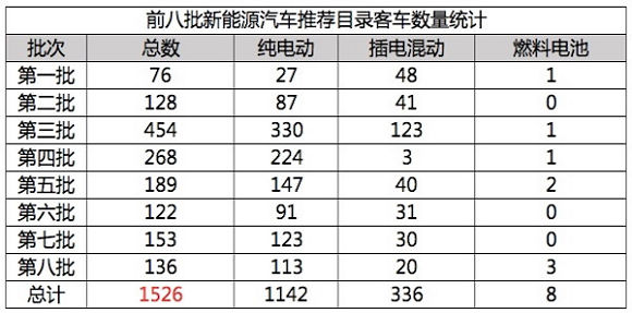 9月2日,工信部发布新能源汽车推广应用推荐车型目录(2017年第8批),共包括95户企业的273个车型。新能源客车方面,共有53户企业136款车型入选。其中,纯电动客车113款,插电式混合动力客车20款,燃料电池客车3款。截止目前,工信部发布的8批目录中,共计1526款新能源客车进入。
