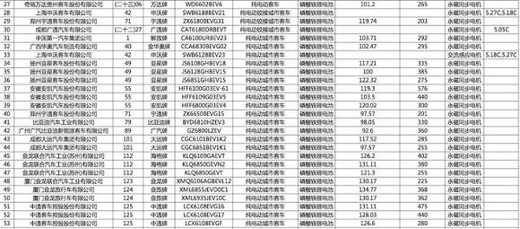 在非快充类纯电动客车动力电池能量密度方面,分布范围在86.7-137.27Wh/kg之间。其中85-95Wh/kg之间的产品2款,95-115Wh/kg之间的产品28款,115Wh/kg以上的产品70款。可见,在第七批推荐目录中有70%的非快充类纯电动客车车型都可获得1.2倍的补贴。此外,本次目录中快充类客车有13款,其中9款产品快充倍率超过5C,最高能达到5.27C。与第七批目录相比,有11款快充车型数量相对增长较多,快充水平也明显提高。(第七批推荐目录客车产品分析,共计1390款新能源客车进前七批目录)