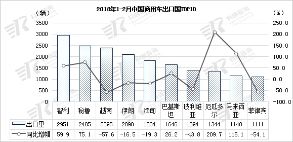 商用车出口市场,智利和秘鲁分别跃居第一和第二名,累计出口量分别为2951辆和2485辆,越南从第一降至第三,累计出口2395辆,同比下滑57.6%