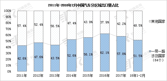 近几年,随着“一带一路”倡议的持续推进,中国汽车正在快速走出国门。根据海关数据统计,2018年1-2月我国对“一带一路”沿线国家出口汽车8.23万辆,占汽车出口总量的51.5%。随着“一带一路”建设的推进,大量基建项目和资金流向沿线国家,为所在地区汽车市场带来发展机遇,也为我国汽车出口提供了巨大的市场空间。我国汽车企业纷纷用实际行动践行“一带一路”倡议,各家车企都在“一带一路”沿线地区加紧布局,“走出去”已成大势所趋