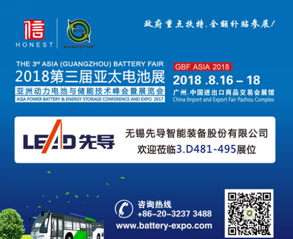 无锡先导智能装备股份有限公司 将隆重出席8月16-18日在广州琶洲.广交会展馆A区举办的GBF.ASIA 2018第三届亚太电池展。