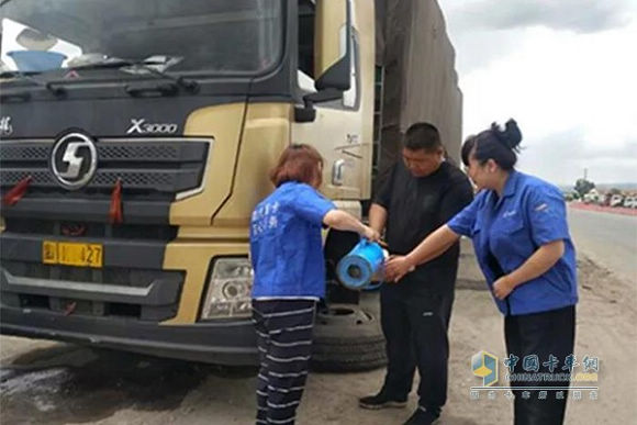 安抚好客户余先生后,汶经理首先联系现场呼和浩特市昊达服务站了解现场情况。并要求服务人员安抚好客户,给余先生父子两人准备热水和方便面,他立即联系中心库尽快协调配件,一定要确保绿通车辆尽快运行起来。