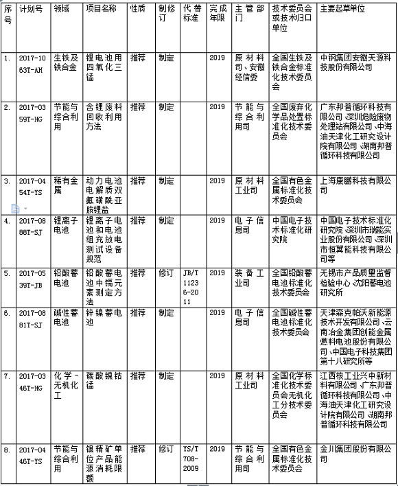 8月7日,工信部印发《2017年第二批行业标准制修订计划》的通知,包括728项行业标准,其中涉及8项动力电池标准。