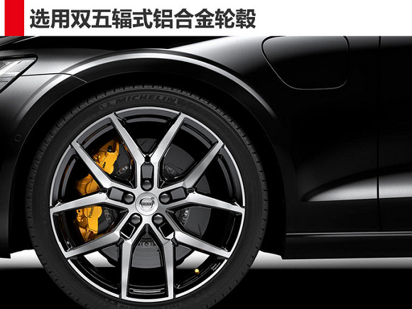 沃尔沃全新一代S60性能版整体外观设计基于普通车型打造,前脸换装熏黑点阵式进气格栅,右侧镶嵌有Polestar星芒LOGO,搭配标志性的“雷神之锤”大灯组,整体运动感十足。车身侧面线条流畅,左侧翼子板配有充电插口,选用双五辐式轻量级铝合金轮毂,搭配由Brembo提供的六活塞式刹车系统。车尾换装全新的“C”字型尾灯组,排气为双边共两出式布局。