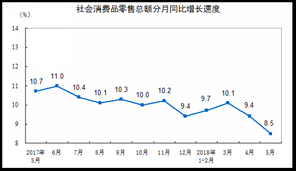 国家统计局:2018年5月社会消费品零售总额增长8.5%