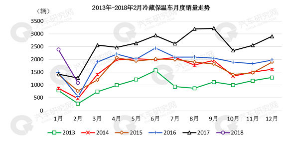 近5年来看,2018年1月销量突破同期历史新高,冷藏保温车市场表现依旧良好。